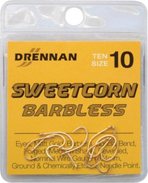 Si apre la stagione della pesca col mais. Specifico per l'innesco singolo o multiplo dei dolci chicchi di mais in scatola è lo Sweetcorn Barbless di Drennan un amo dorato e forgiato consigliato per molteplici impieghi....