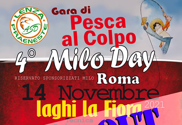 3 edizione del Milo Day Latina, gara a coppie su 2 laghi, Carpodromo e Lago Bianco. La manifestazione si terrà il 12 dicembre 2021.