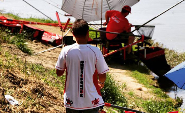 Il pluricampione del mondo Steve Gardener in azioni di pesca con la nuova canna, la Redvolution Silent.