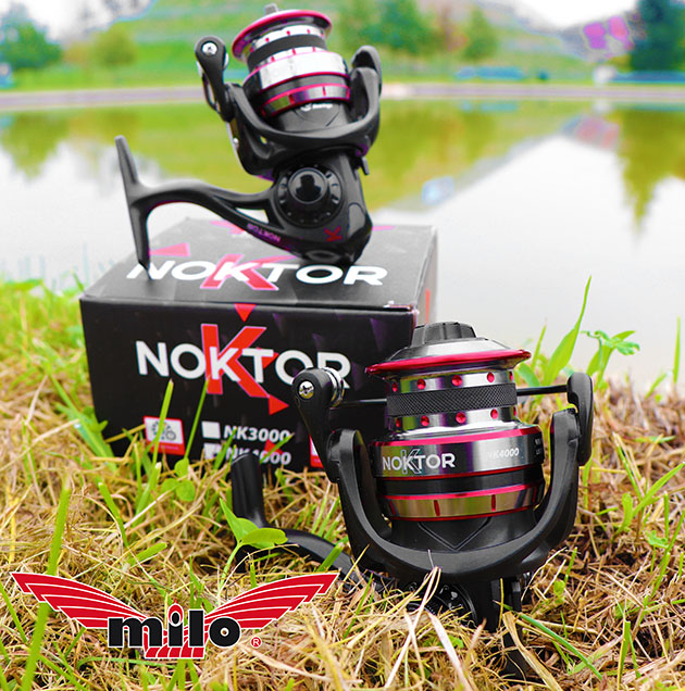 New entry Milo nel settore dei mulinelli: il Noktor. Frizione anteriore ben modulabile, cinque cuscinetti più un rolling ed un recupero da 5,1:1. Il Milo Noktor si posiziona nella fascia degli utilizzi medio – leggeri ad indirizzo polivalente.