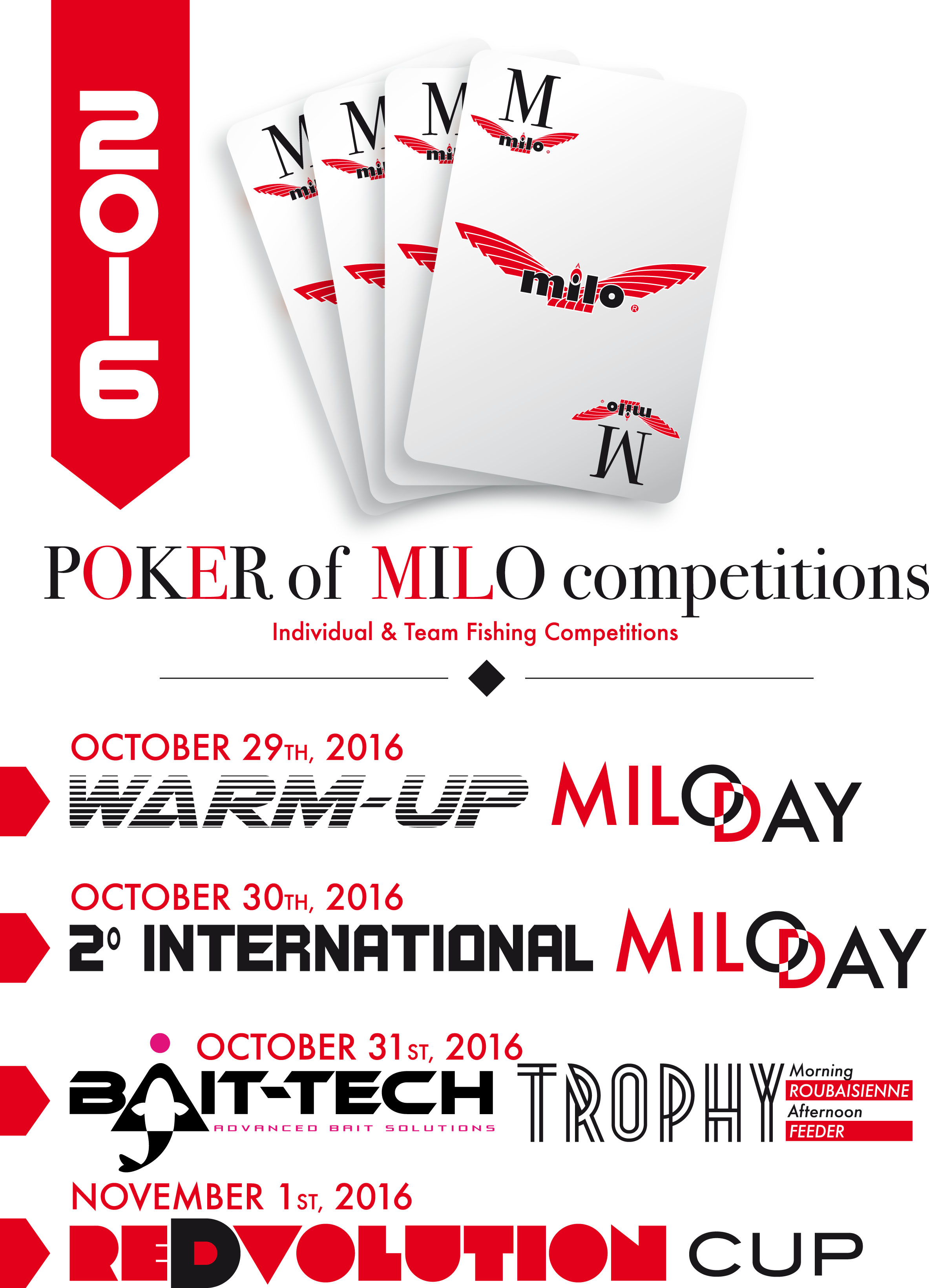 EN Four fishing competitions, in team and individual, branded MILO that will take place on October 29th/30th/31st and November 1st. Subscription deadline on October 20th, 2016.